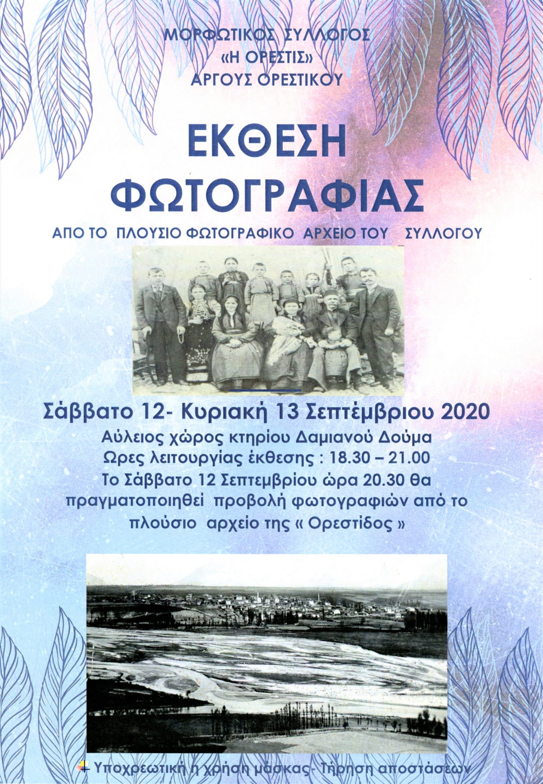 Ο Μορφωτικός Σύλλογος «Η Ορεστίς» Άργους Ορεστικού διοργανώνει ‘Εκθεση Φωτογραφίας, από το πλούσιο φωτογραφικό του αρχείο, το Σάββατο 12 & Κυριακή 13 Σεπτεμβρίου 2020, στον αύλειο χώρο του κτιρίου δωρεάς Δαμιανού Δούμα της Ορεστίδος.