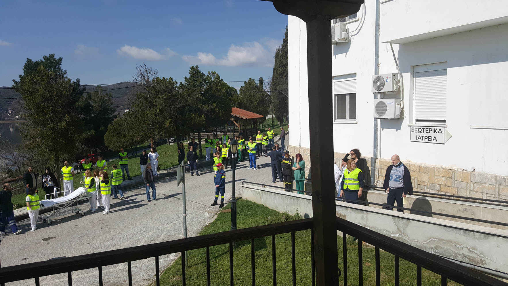Την Τετάρτη 28 Μαρτίου 2018, στο πλαίσιο του πανελλαδικού επιχειρησιακού σχεδιασμού και διαπίστωσης της ετοιμότητας του προσωπικού των Νοσοκομείων, της αντιμετώπισης εκτάκτων αναγκών και διαχείρισης κρίσεων και της βελτιστοποίησης της συνεργασίας με τους εμπλεκομένους φορείς και κυρίως με το Πυροσβεστικό Σώμα, το Εθνικό Κέντρο Επιχειρήσεων Υγείας (ΕΚΕΠΥ), πραγματοποίησε Άσκηση Ετοιμότητας στο Γενικό Νοσοκομείο Καστοριάς.
