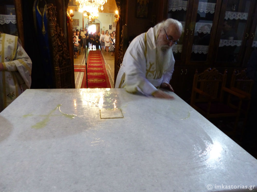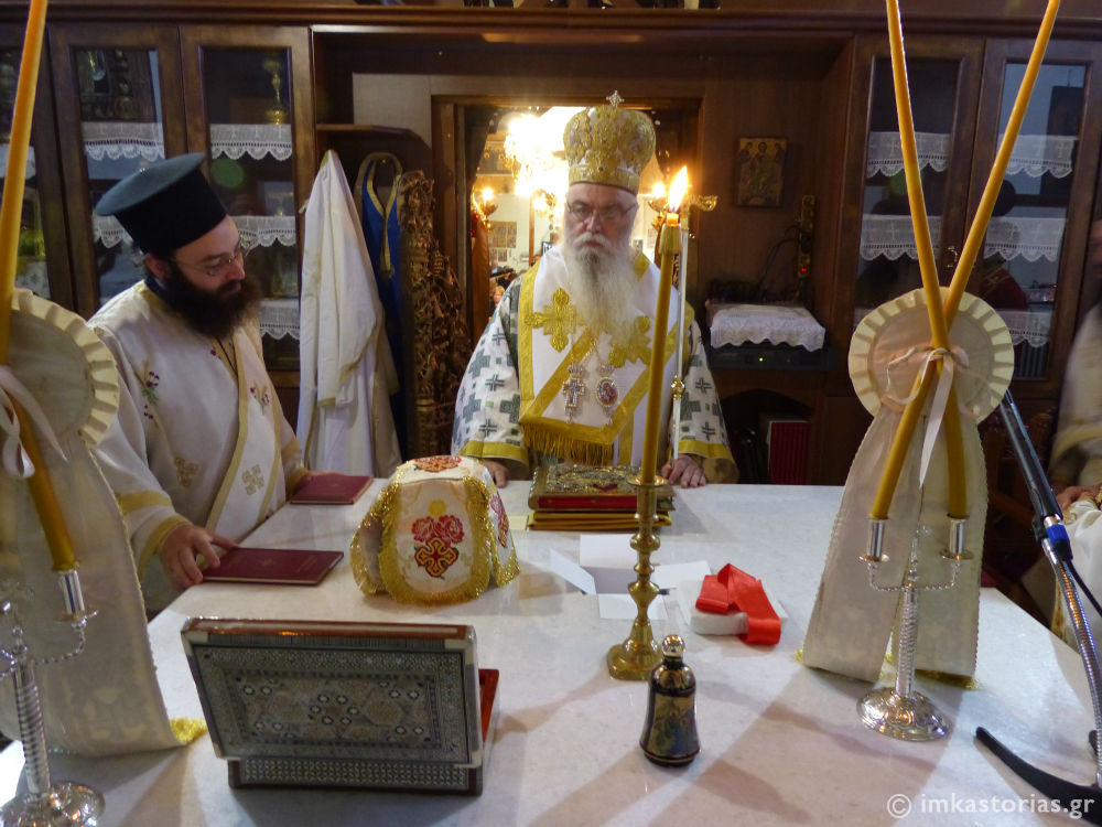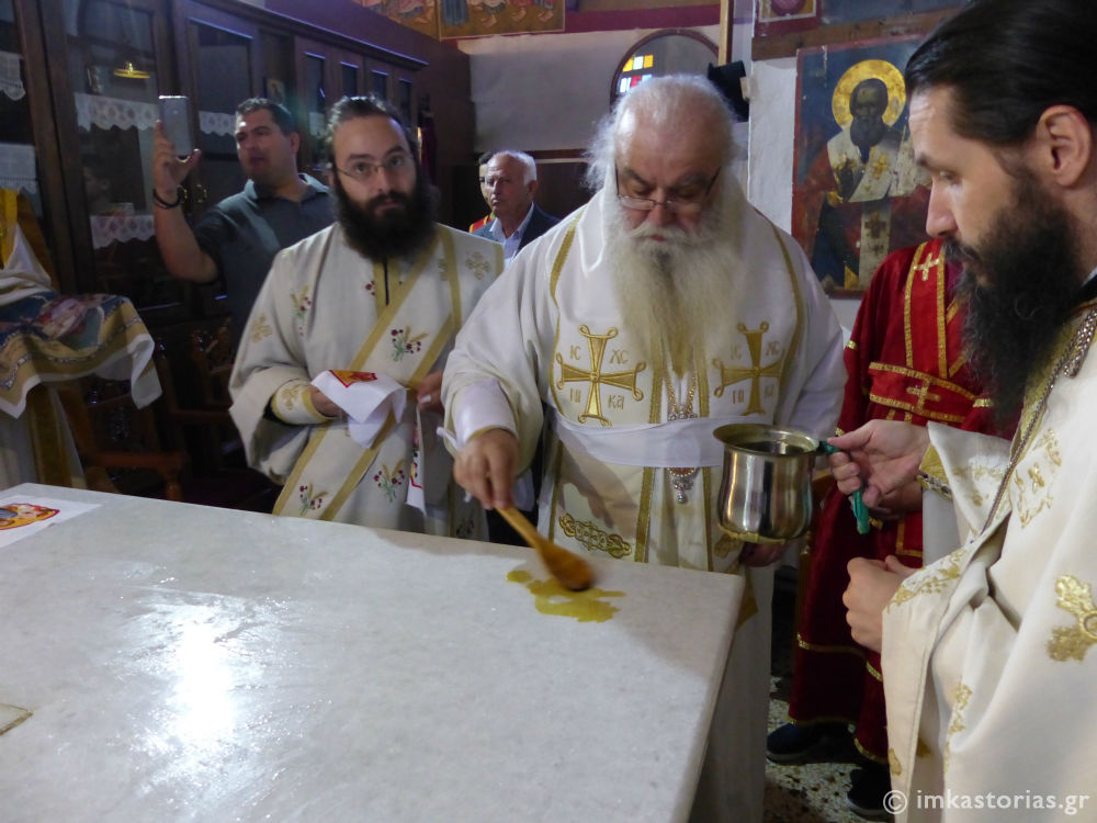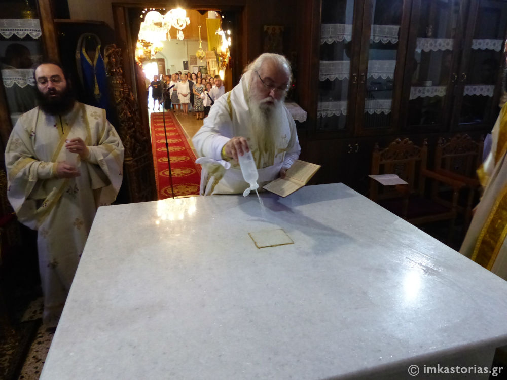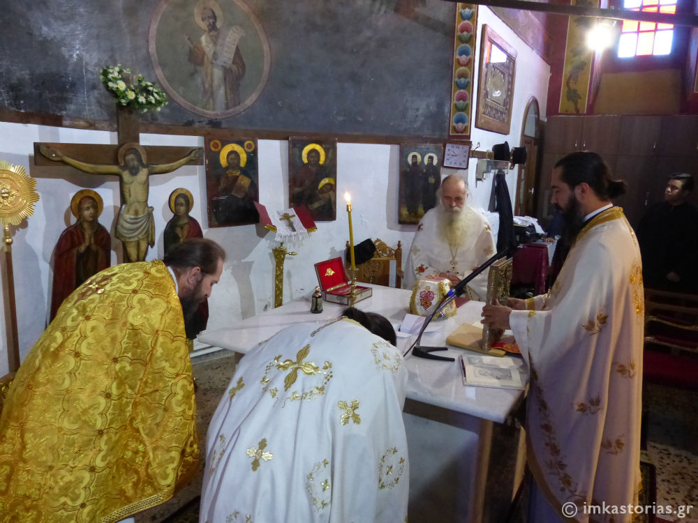 Το πρωί εψάλει ο Όρθρος και ακολούθησε ο Καθαγιασμός της Αγίας Τραπέζης, με την συμμετοχή του Πρωτοσυγκέλλου Αρχιμ. Αθανασίου Γιαννουσά, Ιερέων της Μητροπόλεως και των Διακόνων, καθώς και εκατοντάδων πιστών του χωριού και της γύρω περιοχής.
