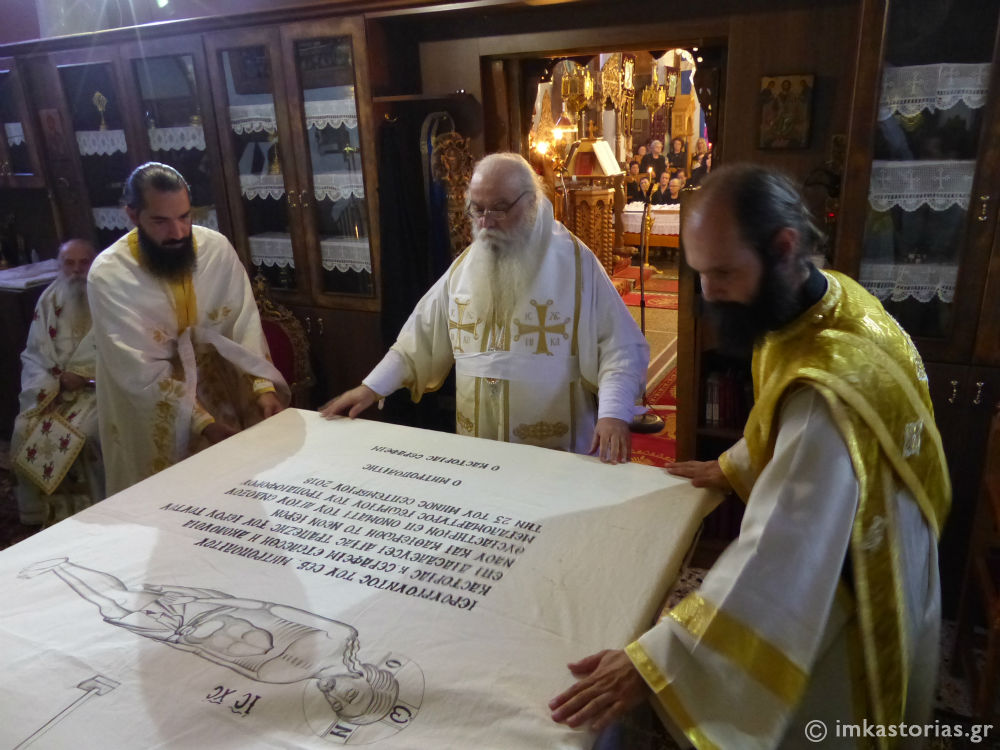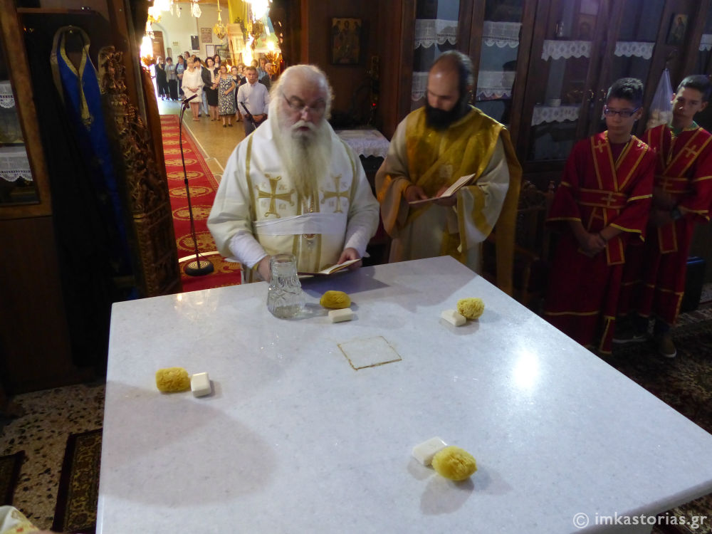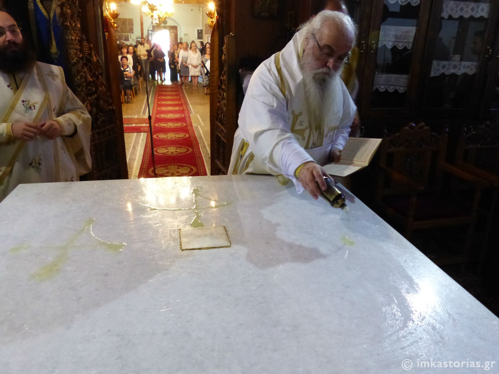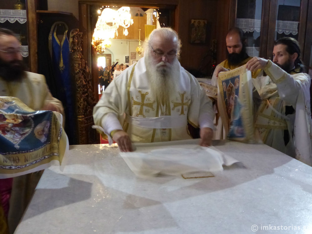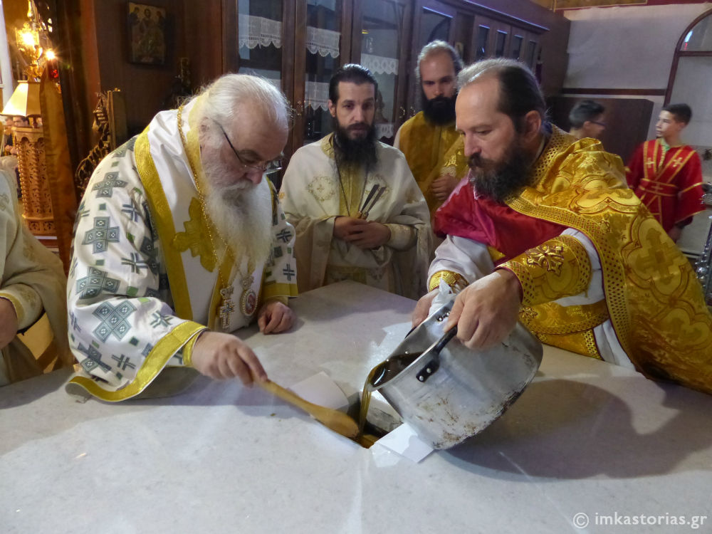 Το πρωί εψάλει ο Όρθρος και ακολούθησε ο Καθαγιασμός της Αγίας Τραπέζης, με την συμμετοχή του Πρωτοσυγκέλλου Αρχιμ. Αθανασίου Γιαννουσά, Ιερέων της Μητροπόλεως και των Διακόνων, καθώς και εκατοντάδων πιστών του χωριού και της γύρω περιοχής.