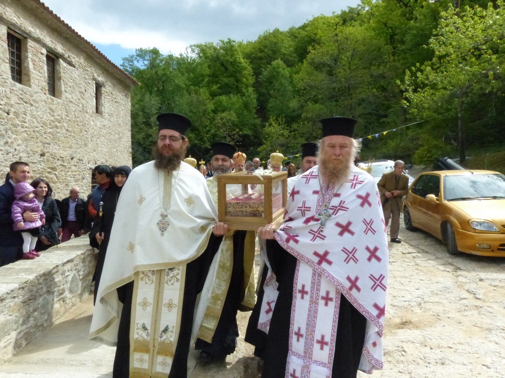 Μετά την ευλόγηση του περίτεχνου κολλύβου, ακολούθησε η καθιερωμένη Λιτανεία μέχρι τον τάφο της Αγίας. Αξίζει να σημειωθεί ότι τις λατρευτικές εκδηλώσεις τίμησαν με την παρουσία τους και τα μέλη ποντιακών συλλόγων, από όπου καταγόταν η Οσία.