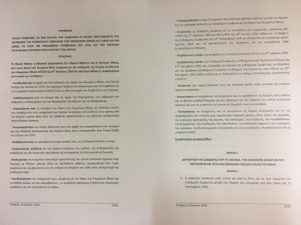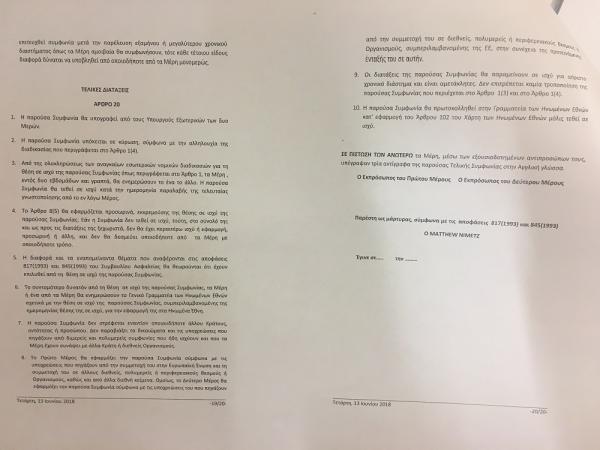 Κατατέθηκε πριν από λίγο στη Βουλή η συμφωνία της Ελλάδας με την ΠΓΔΜ για την ονομασία των Σκοπίων. Μετά από απαίτηση των κομμάτων η κυβέρνηση κατέθεσε το τελικό κείμενο στο οποίο κατέληξαν Αθήνα και Σκόπια μετά και την δεύτερη τηλεφωνική επικοινωνία Τσίπρα-Ζάεφ.