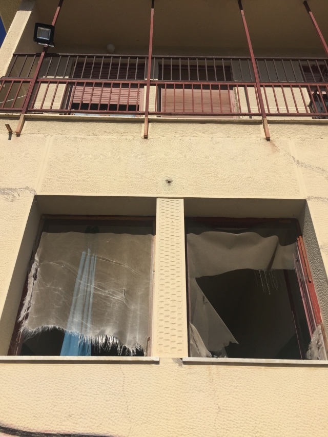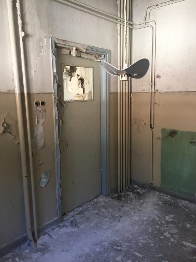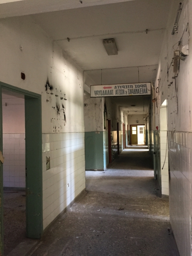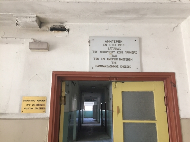 Ιδού, για όλα αυτά, μία άλλη ακόμη απόδειξη : Μπαίνοντας στο ορθάνοιχτο, λεηλατημένο κτίριο σε καλωσορίζει η πρώτη μαρμάρινη αναμνηστική πινακίδα «Ανεγέρθη εν έτει 1959 δαπάναις του Υπουργείου Κοιν. Πρόνοιας και των Εν Αμερική Ομογενών της Παμμακεδονικής Ένωσεως».