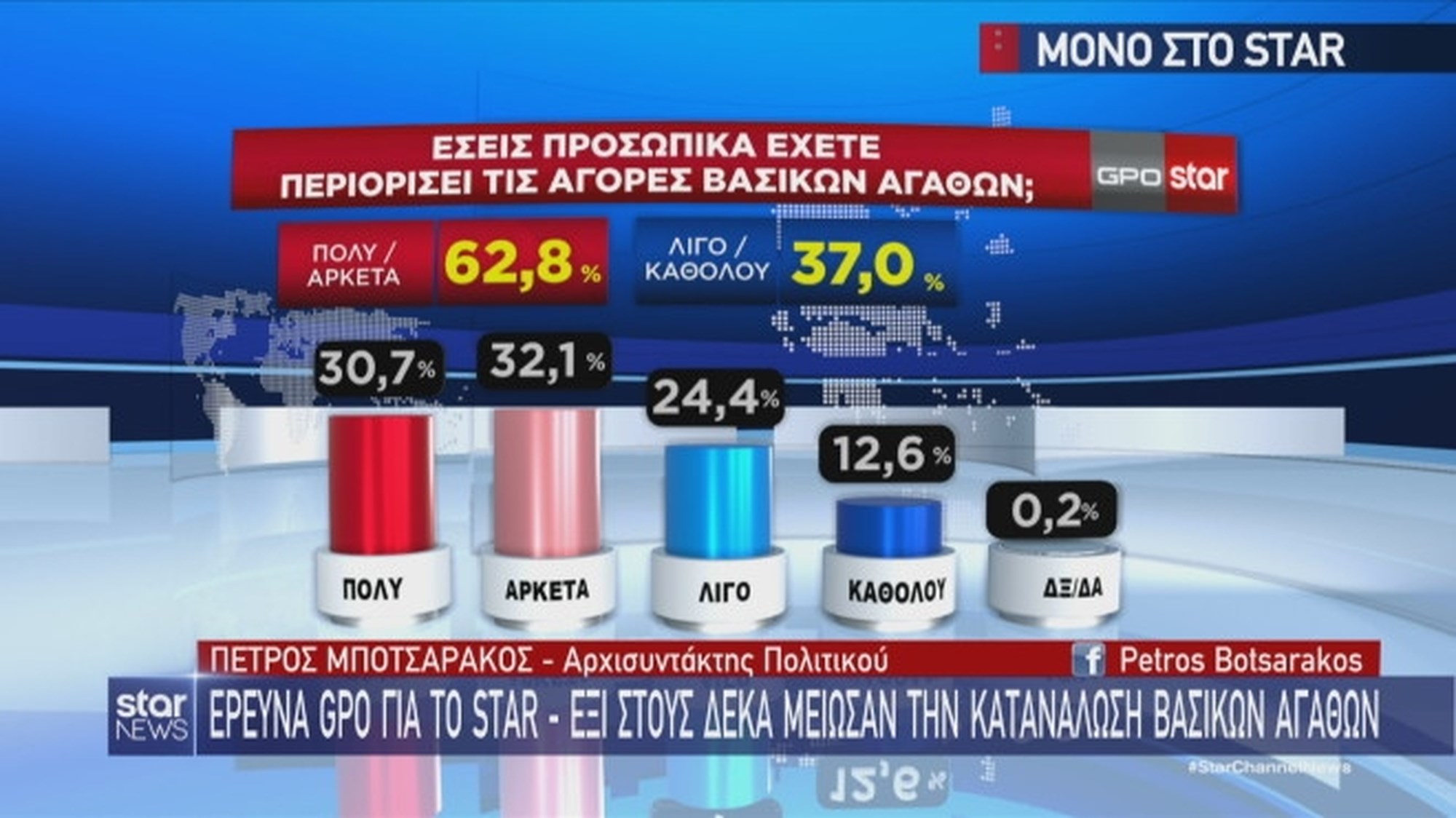 Σύμφωνα με τη δημοσκόπηση της GPO, οι πολίτες δηλώνουν ότι έχουν περιορίσει τις αγορές του ακόμη και όταν μιλάμε για βασικά είδη της καθημερινότητας.