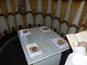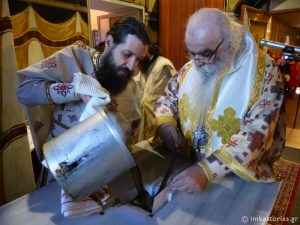 Κατά τη διάρκεια των Εγκαινίων ο Σεβασμιώτατος εξηγούσε στο εκκλησίασμα τα τεκταινόμενα εντός του Ιερού Βήματος και ανέλυε το συμβολισμό τους.