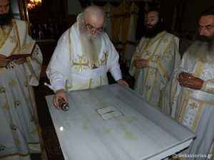 Τα Εγκαίνια της Αγίας Τραπέζης του δεξιού κλίτους του Ιερού Ναού Αγίου Δημητρίου Κωσταραζίου, προς τιμήν του Αγίου Παϊσίου του Αγιορείτου, τέλεσε ο Σεβασμιώτατος Μητροπολίτης Καστορίας κ. Σεραφείμ την Κυριακή της Συνάξεως των Αγιορειτών Πατέρων.