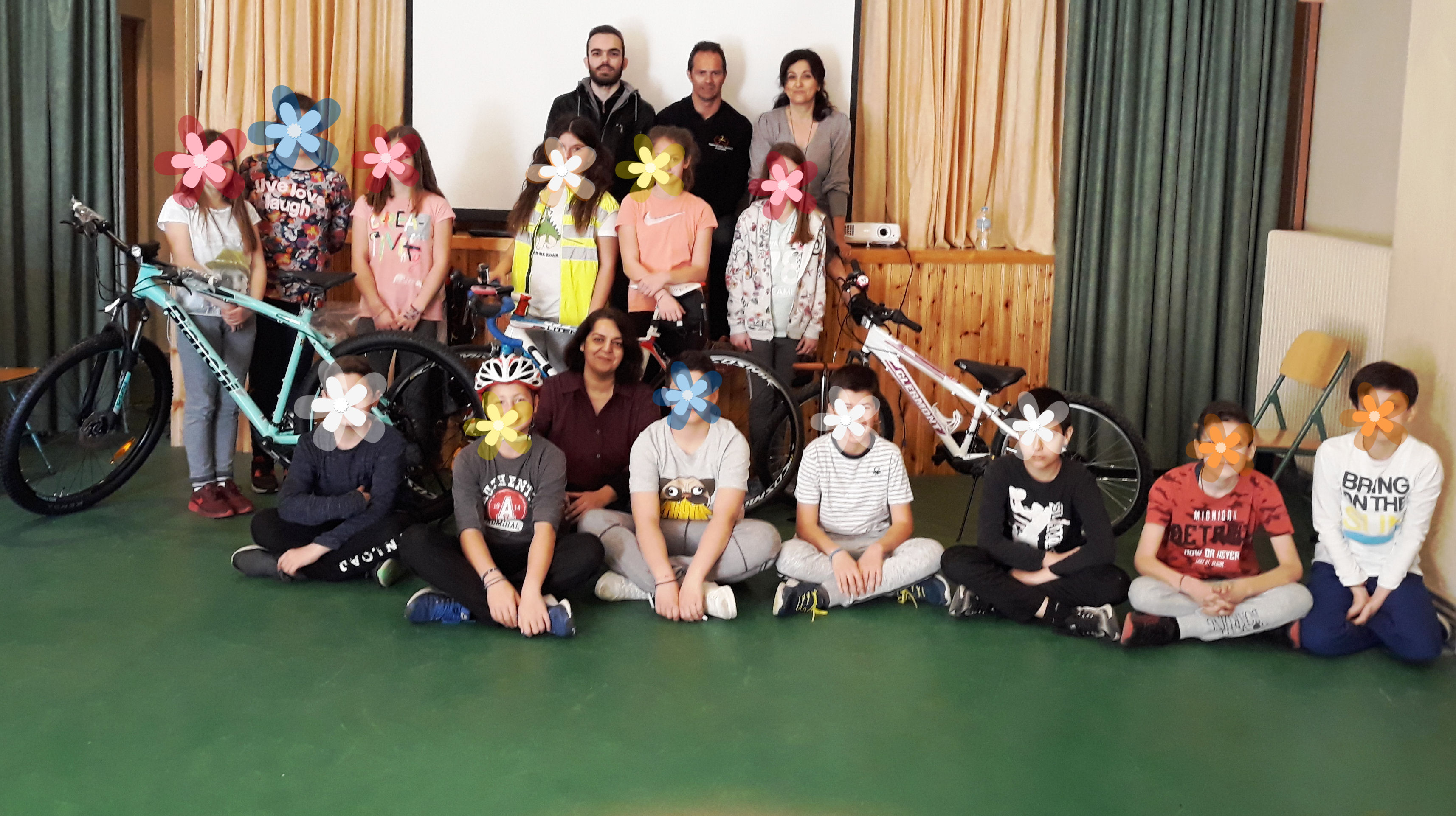 Ο Πρόεδρος του Ποδηλατικού Συλλόγου Καστοριάς κ. Βασιλείου Δημήτρης και ο Γραμματέας κ. Παναγιωτίδης Νίκος επισκέφτηκαν το σχολείο μας και μίλησαν στους μαθητές για τα οφέλη του αθλήματος, για την ασφάλεια και την προστασία του ποδηλάτη. Έδειξαν τον ποδηλατικό εξοπλισμό, ενώ έμφαση δόθηκε στο κράνος που πρέπει όλοι οι ποδηλάτες να φορούν. Τα παιδιά ενθουσιάστηκαν με την παρουσίαση και με τα ποδήλατα, και δήλωσαν χαρούμενα ότι θα αγοράσουν σίγουρα κράνος!