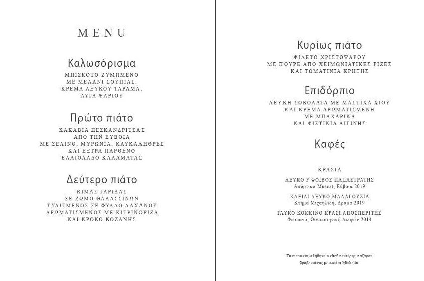 «Ζήτησαν όλο το μενού και αυτό μας κάνει περήφανους και αρεστούς, γιατί χωρέσαμε όση περισσότερη Ελλάδα μπορούσε σε ένα πιάτο. Ηταν τέσσερα πιάτα μαζί με το γλυκό. Αντιλαμβάνεστε ότι εμένα προσωπικά αυτό με έχει κάνει υπερήφανο» είπε ο γνωστός σεφ στο Πρώτο Πρόγραμμα και συμπλήρωσε: