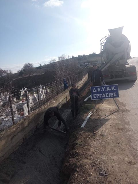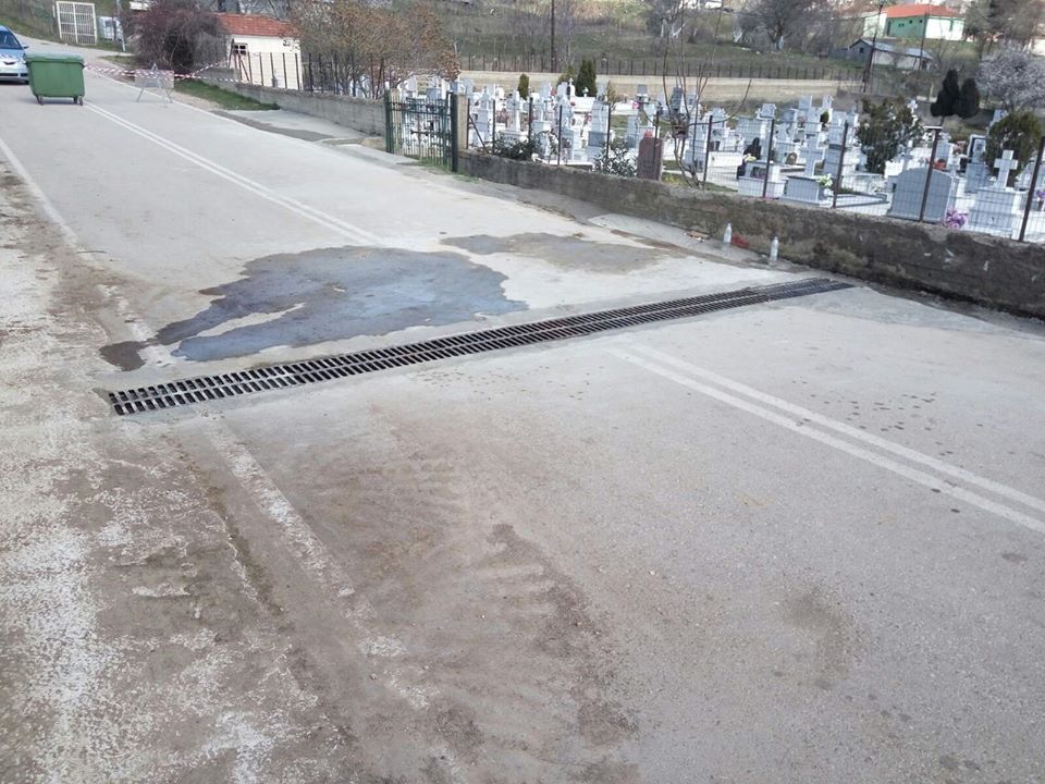 παραδίδοντας στην τοπική κοινότητα Ιεροπηγής το έργο του καθαρισμού των πρανών και κατασκευής φρεατίων για τη διοχέτευση των όμβριων υδάτων στην είσοδο του χωριού.