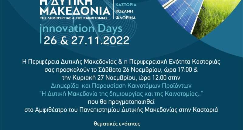 Ποσκληση στη Διημερίδα που διοργανώνει η Περιφέρεια Δυτικής Μακεδονίας με θέμα: “Η Δυτική Μακεδονία της Δημιουργίας και της Καινοτομίας”,