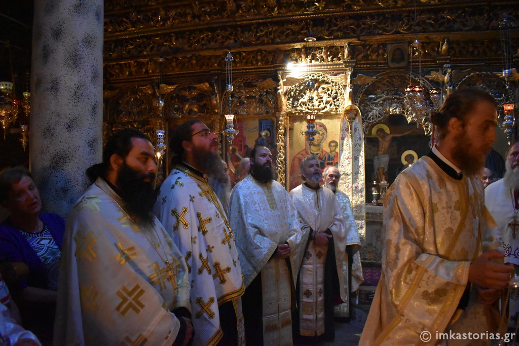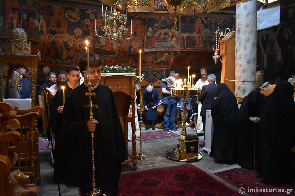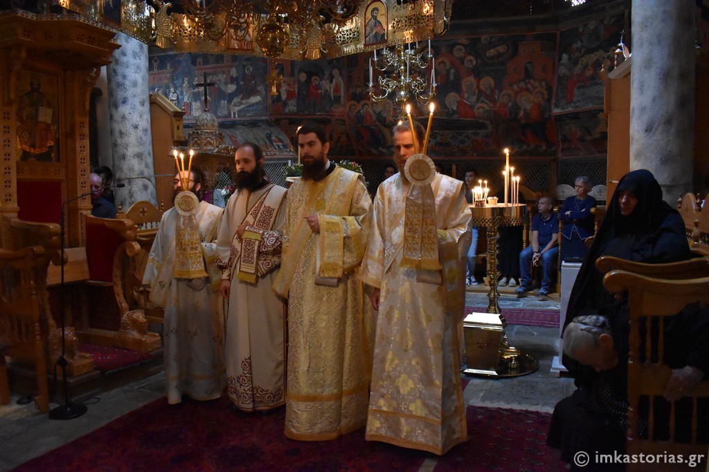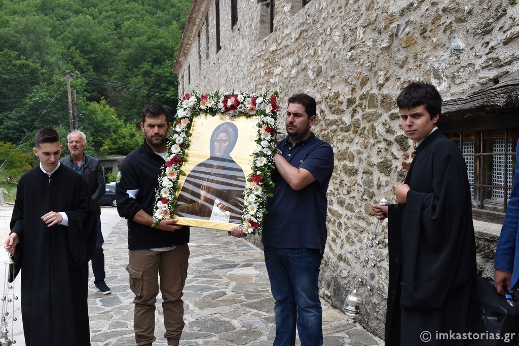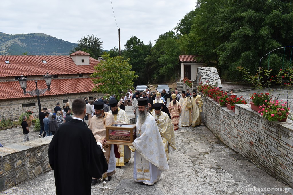 Στο τέλος, τελέστηκε σύντομη Λιτανεία πέριξ της Ιεράς Μονής, ενώ ο Μητροπολίτης Καστορίας διάβασε και σχετική ευχή προς την Οσία Σοφία.