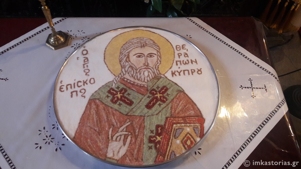 Στη σύντομη ομιλία του ο Σεβασμιώτατος αναφέρθηκε στα μηνύματα από τη ζωή του Αγίου Θεράποντος και επαίνεσε το εκκλησίασμα για την παρουσία του και την ευλάβειά τους προς τους Αγίους, ενώ προ της Απολύσεως ευλόγησε και το κόλλυβο προς τιμήν του Αγίου το οποίο φιλοτέχνησαν οι κάτοικοι του χωριού.