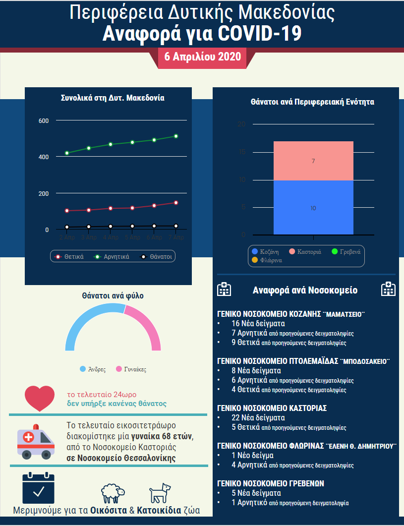Η ημερήσια αναφορά για τον κορωνοϊό COVID-19 από την Περιφέρεια Δυτικής Μακεδονίας,Τρίτη 7 Απριλίου 2020