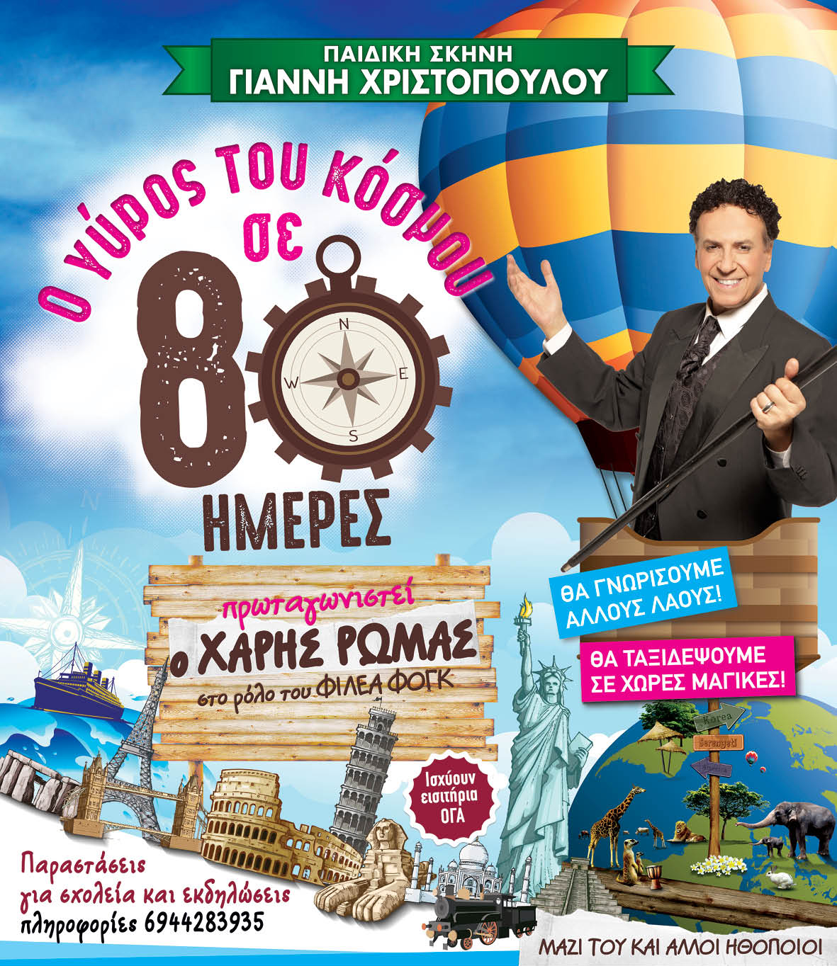 Η Παιδική Σκηνή του Γιάννη Χριστόπουλου για τη χειμερινή σεζόν 2017-2018 παρουσιάζει το αριστουργηματικό έργο του Ίουλιου Βερν «Ο γύρος του κόσμου σε 80 ημέρες» με πρωταγωνιστή στο ρόλο του Φιλέα Φονγκ τον δημοφιλή μας ηθοποιό Χάρη Ρώμα!