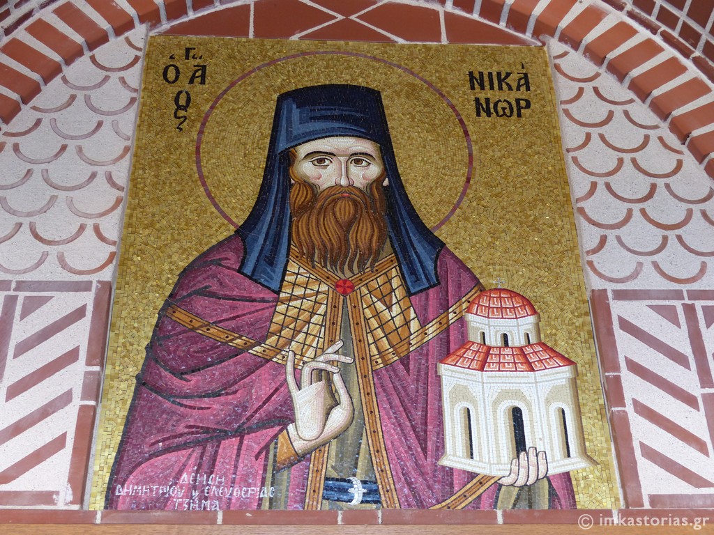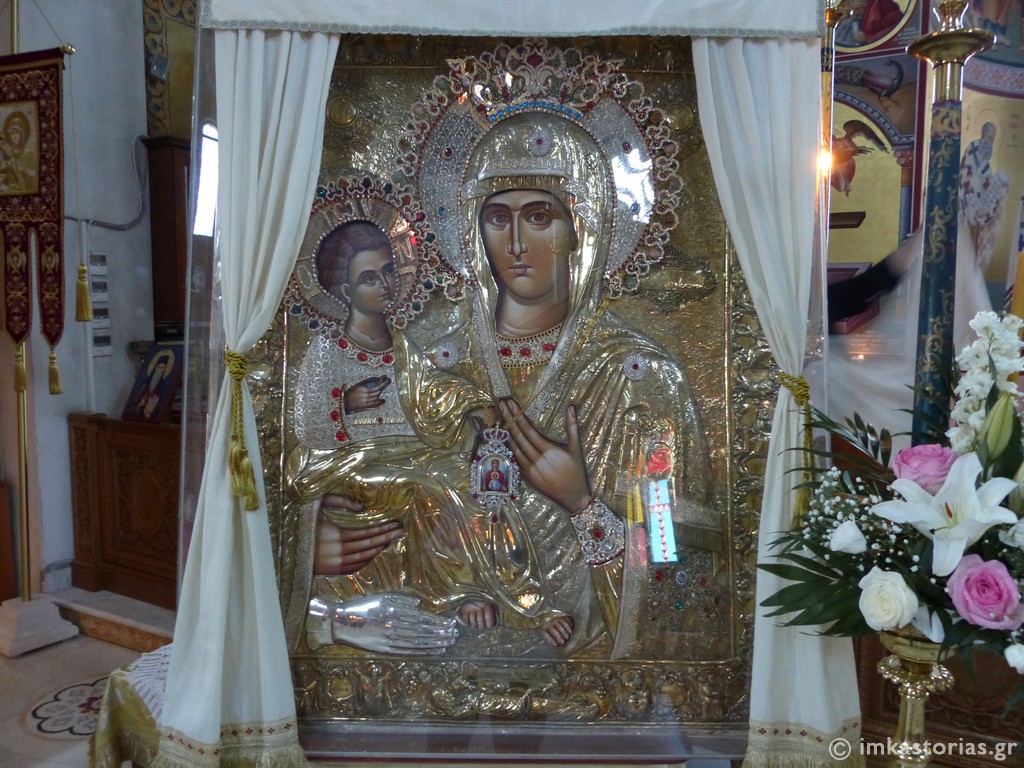 Αντίγραφο της θαυματουργού εικόνος της Παναγίας της Τριχερούσας, της εικόνος του Αγίου Ιωάννου του Δαμασκηνού, που φυλάσσεται στην Ιερά Μονή Χιλανδαρίου Αγίου Όρους, αποθησαυρίζεται στον Ιερό Ναό Αγίου Νικάνορος Καστοριάς.