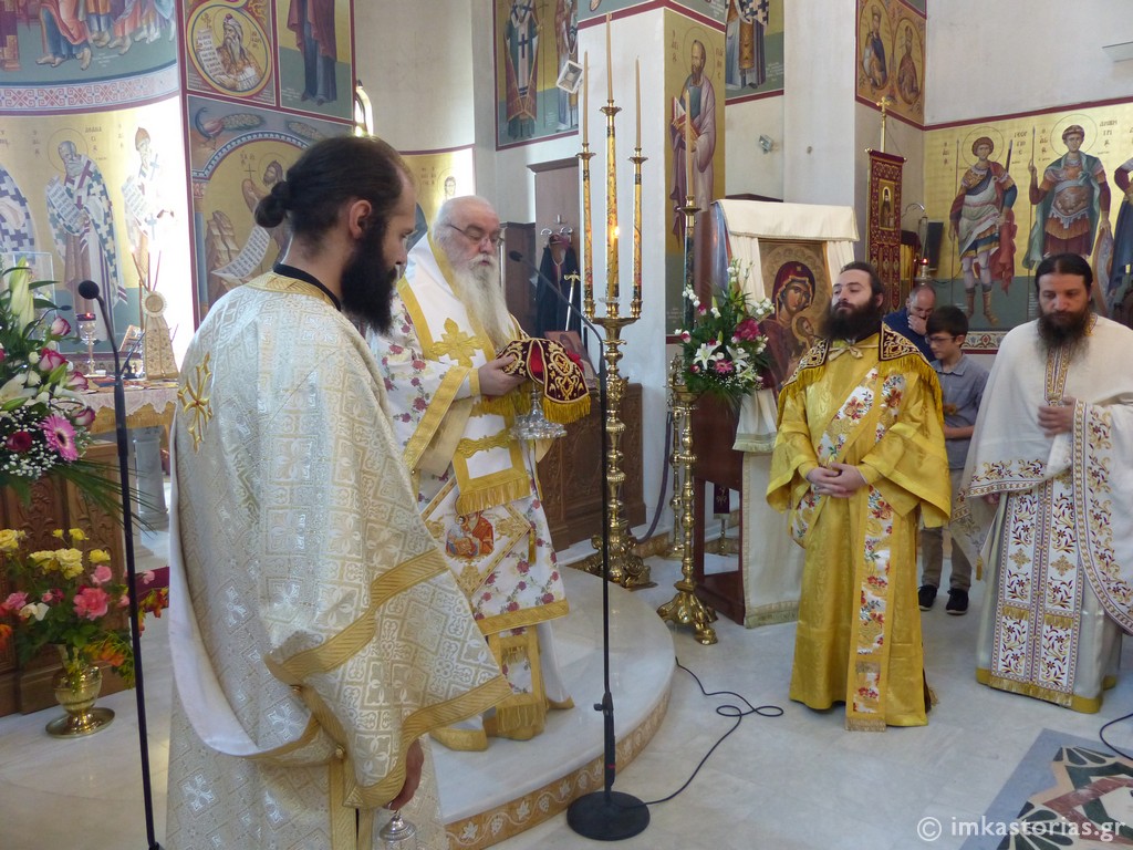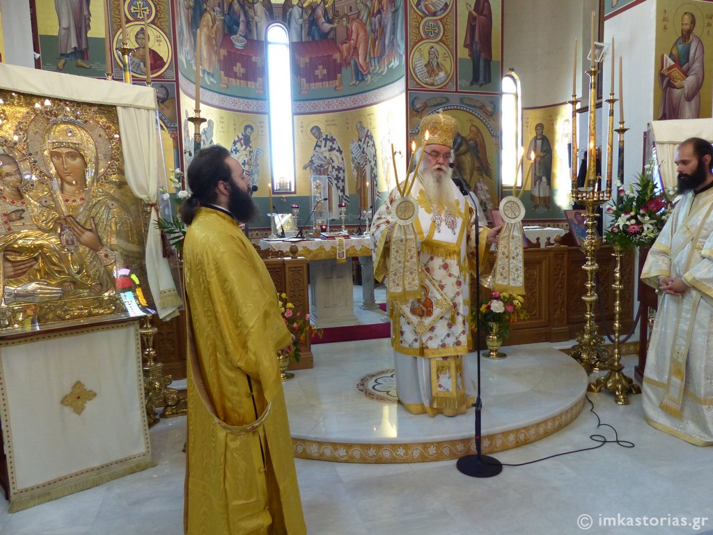 Της Θείας Μυσταγωγίας προεξήρχε ο Σεβασμιώτατος Μητροπολίτης Καστορίας κ. Σεραφείμ, με τη συμμετοχή του Πρωτοσυγκέλλου Αρχιμ. Αθανασίου Γιαννουσά, των Εφημερίων του Ναού και των Διακόνων, αλλά και πλήθους πιστών, οι οποίοι προσκύνησαν την Ιερά Εικόνα της Παναγίας.