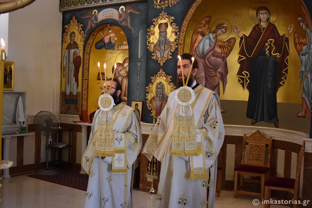 Μαζί με τον Σεβασμιώτατο συλλειτούργησαν ο εφημέριος του ως άνω Ιερού Ναού, π. Λεωνίδας και οι Διάκονοι Ιάκωβος και Παύλος.
