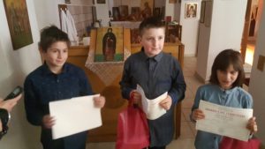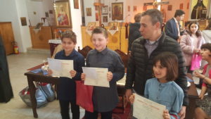 Την Κυριακή 4 Φεβρουαρίου πραγματοποιήθηκε στην αίθουσα δεξιώσεων του Ιερού Ναού Αγίου Νικάνορα, η απονομή των βραβείων στους τέσσερις αριστεύσαντες μαθητές της Ε’ και ΣΤ’ τάξης των Δημοτικών Σχολείων της Π.Ε. Καστοριάς, που συμμετείχαν στο διαγωνισμό συγγραφής έκθεσης που διοργάνωσε για ένατη συνεχομένη χρονιά ο Ι.Ν Αγίου Νικάνορα.