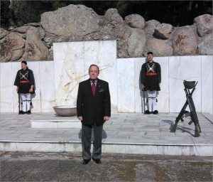 Αμέσως μετά την τελετή του θρησκευτικού Μνημοσύνου, ο Διοικητής του 15ου Συντάγματος ΠΖ κατέθεσε στέφανο στο Ηρώο του Νεκροταφείου και ακολούθως έγινε το Προσκλητήριο των 112 αξιωματικών, 94 υπαξιωματικών και 5.718 οπλιτών του Στρατού μας, που έχυσαν το τίμιο αίμα τους στο Γράμμο και το Βίτσι για την ελευθερία και τη δημοκρατία, κατά τον επάρατο ανταρτοπόλεμο 1946 – 49, και που έκτοτε είναι, πολλοί εξ αυτών, θαμμένοι στο αναφερόμενο Στρατιωτικό Νεκροταφείο. Ακολούθως, η παρευρισκόμενη Διμοιρία Στρατού έψαλε τον Εθνικό μας Ύμνο κι έτσι περατώθηκε η εξεταζόμενη σεπτή εκδήλωση.