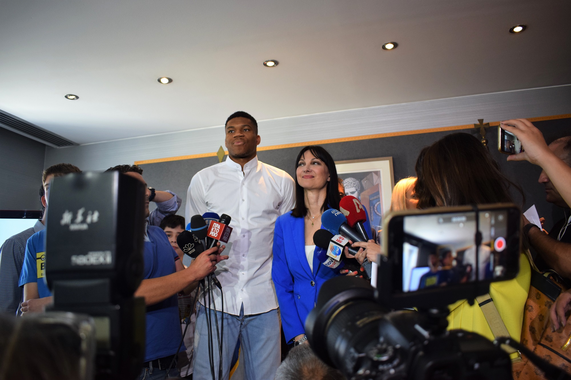 Ο Γιάννης Αντετοκούνμπο με τη σειρά του ευχαρίστησε την κα Κουντουρά για την τιμή που του έγινε να είναι «πρεσβευτής» του ελληνικού τουρισμού, δηλώνοντας: