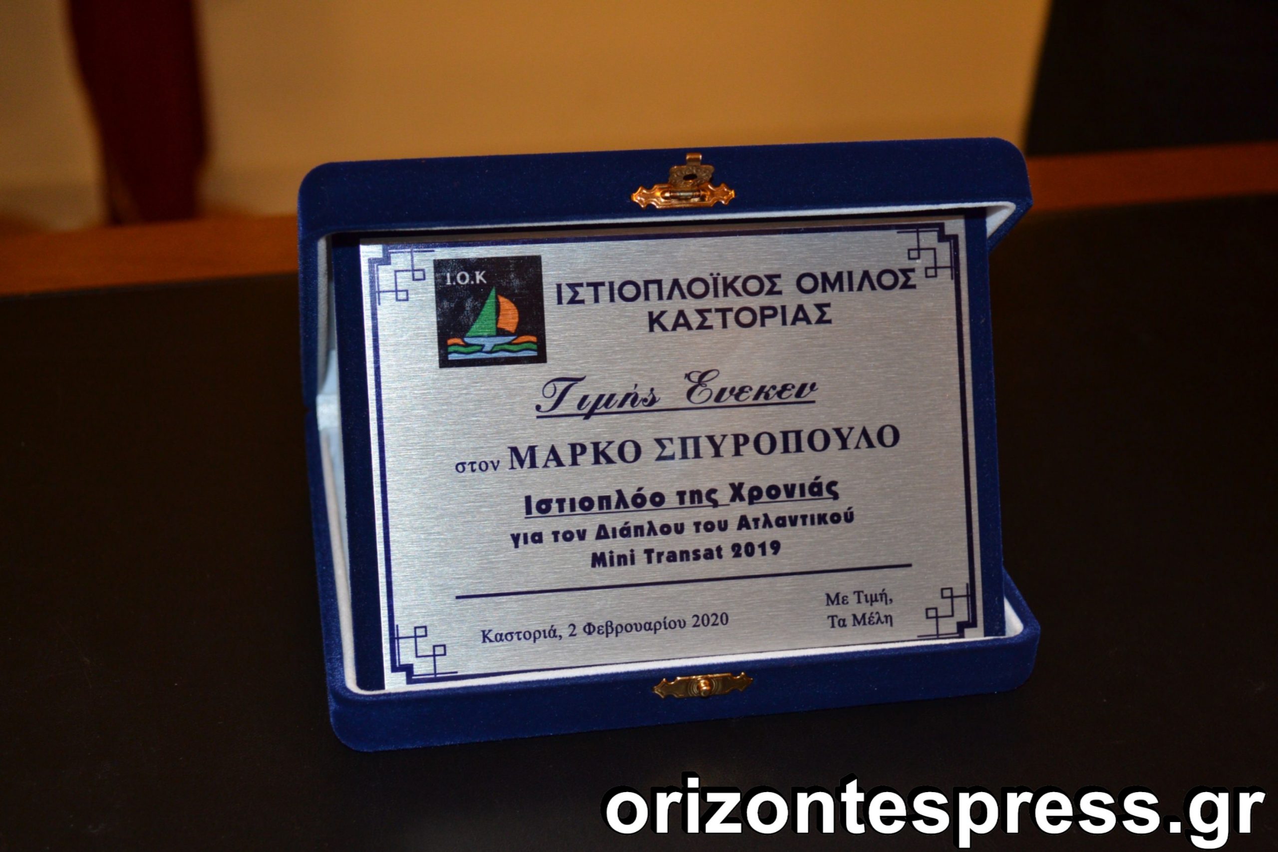 Πραγματοποιήθηκε σήμερα Κυριακή 2 Φεβρουαρίου 2020 η  Τιμητική Εκδήλωση του Δήμου Καστοριάς για τον Ιστιοπλόο Μάρκο Σπυρόπουλο.