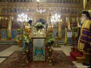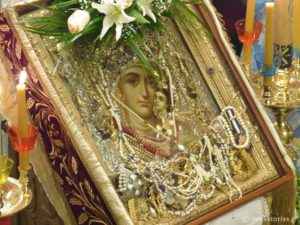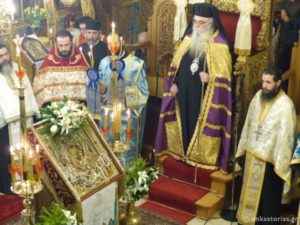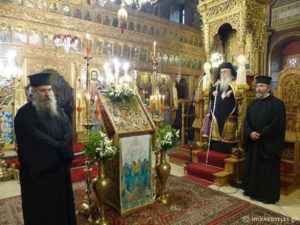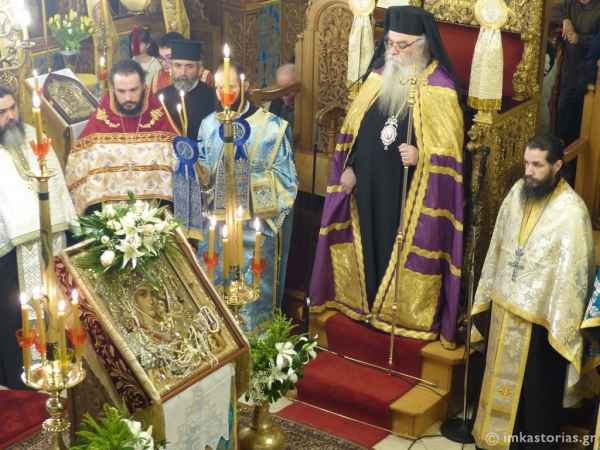 Νωρίτερα, στα προπύλαια του Μητροπολιτικού Ναού έγινε η υποδοχή της θαυματουργού Ιεράς Εικόνος της «Παναγίας των Θλιβομένων η Χαρά», την οποία κόμισε στην Καστοριά ο π. Ιγνάτιος, προς ευλογία και αγιασμό των πιστών.
