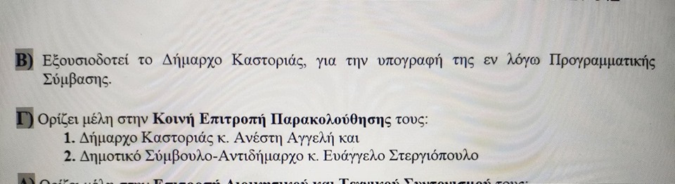 Της απόφασης του Δημοτικού Συμβουλίου Καστοριάς
