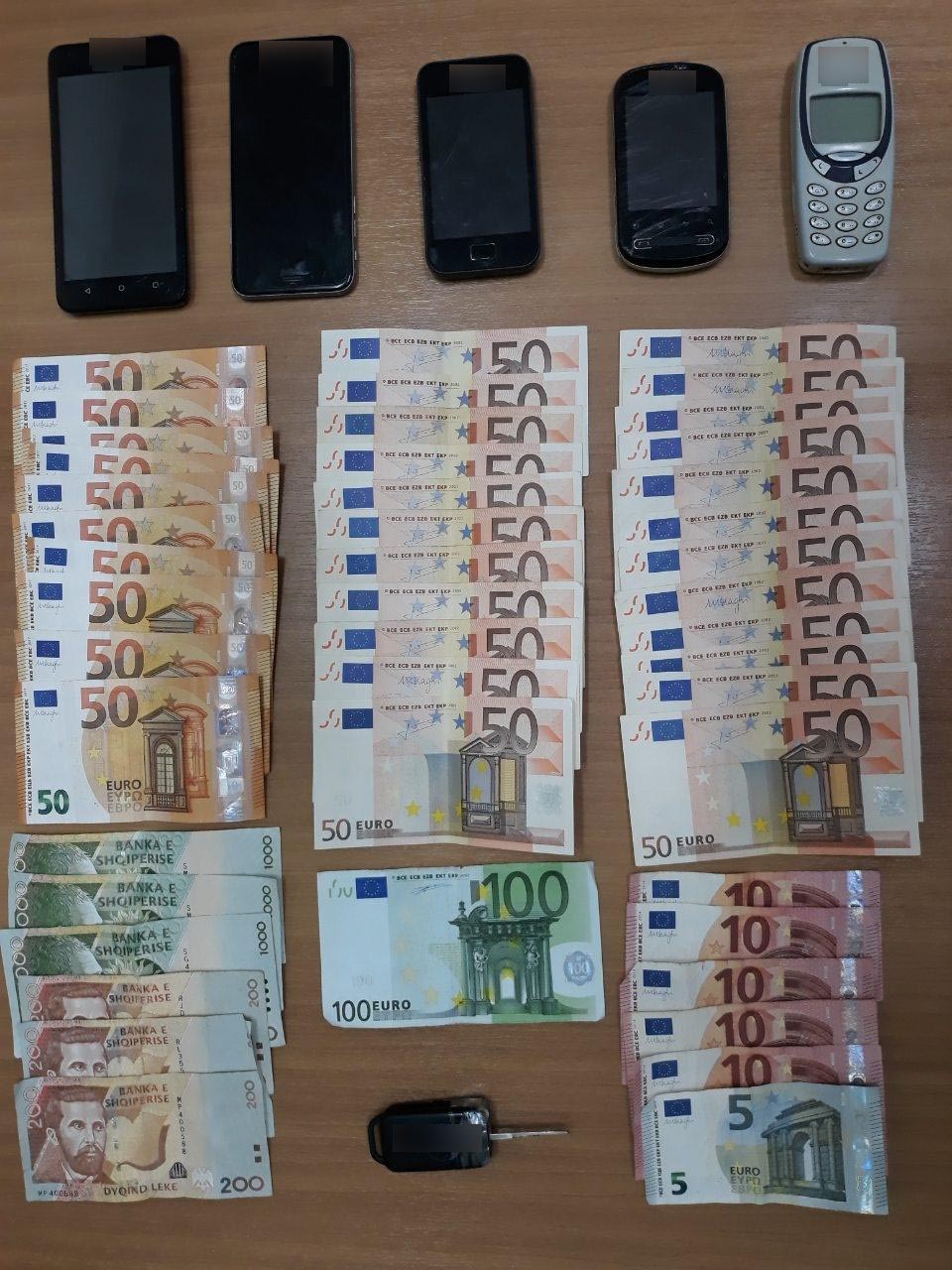 Κατασχέθηκαν το ανωτέρω Ι.Χ.Ε. αυτοκίνητο που χρησιμοποιήθηκε για τη μεταφορά, -5- κινητά τηλέφωνα, -4- κάρτες SIM και τα χρηματικά ποσά των – 1.805- ευρώ και -3.600- λεκ Αλβανίας.