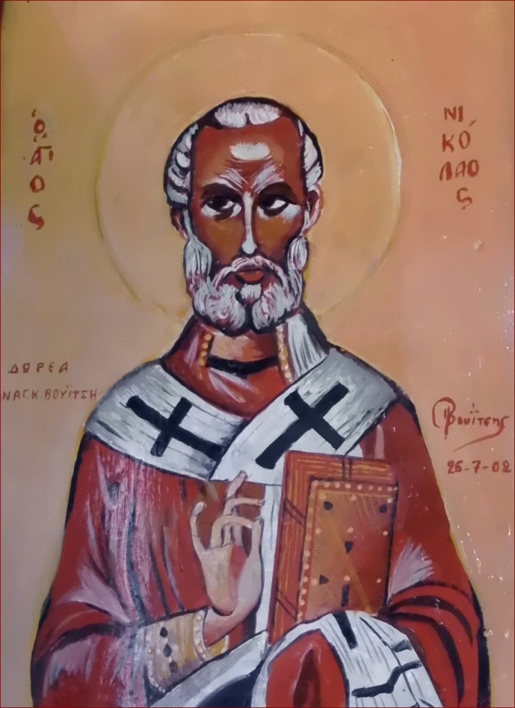 Εντός του εν λόγω ναΰδριου υπάρχουν 10 φορητές εικόνες διαστάσεων 40 Χ 60 εκατοστών περίπου. Οι εικόνες αυτές φιλοτεχνήθηκαν το έτος 2002 από τον αείμνηστο δάσκαλο και αυτοδίδακτο αγιογράφο κι ερασιτέχνη ζωγράφο Παναγιώτη Βουίτση. Πρόκειται για έργα μέτριας καλλιτεχνικής ποιότητας, που προσελκύουν όμως το ενδιαφέρον των κατοίκων τής περιοχής, επειδή αποτελούν απτή εκδήλωση τής μεγάλης ευσέβειας τού αναφερόμενου δασκάλου κι έκφραση της βαθιάς πίστης του στον Θεό.