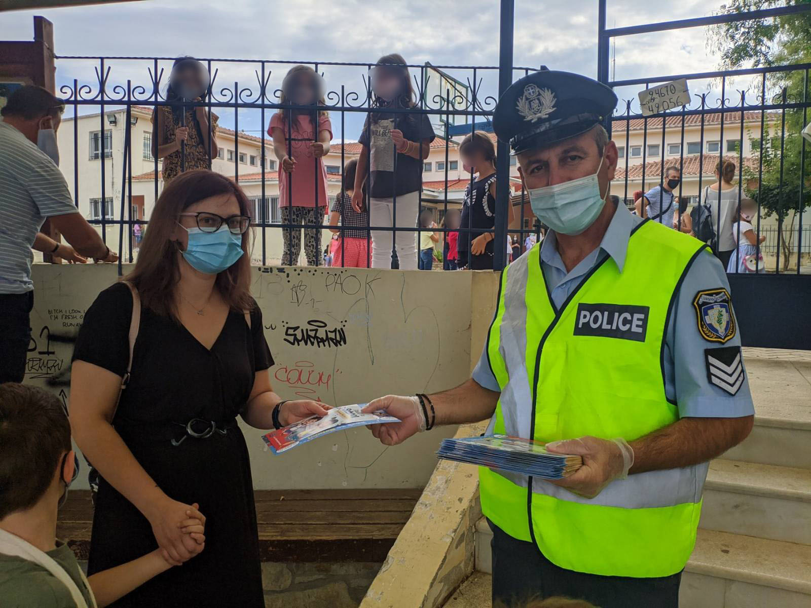 Με αφορμή την έναρξη της νέας σχολικής περιόδου, σήμερα (14-09-2020) το πρωί, διανεμήθηκαν από ένστολο προσωπικό των Υπηρεσιών της Γενικής Περιφερειακής Αστυνομικής Διεύθυνσης Δυτικής Μακεδονίας, ενημερωτικά φυλλάδια με συμβουλές οδικής ασφάλειας και κυκλοφοριακής αγωγής και ευχές για μια καλή σχολική χρονιά, σε μικρούς μαθητές και γονείς, κατά τη προσέλευσή τους για την καθιερωμένη τελετή αγιασμού, στα σχολικά συγκροτήματα των Γρεβενών, της Καστοριάς, της Κοζάνης και της Φλώρινας.