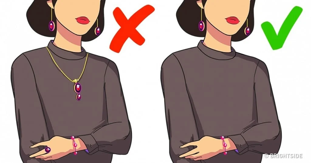 3ος κανόνας: Βάλτε σκουλαρίκια, που να ταιριάζουν, με το βραχιόλι σας ή το κολιέ που ταιριάζει, με το δαχτυλίδι σας. Τα πολλά κοσμήματα σε μια εμφάνιση θεωρούνται υπερβολικά.