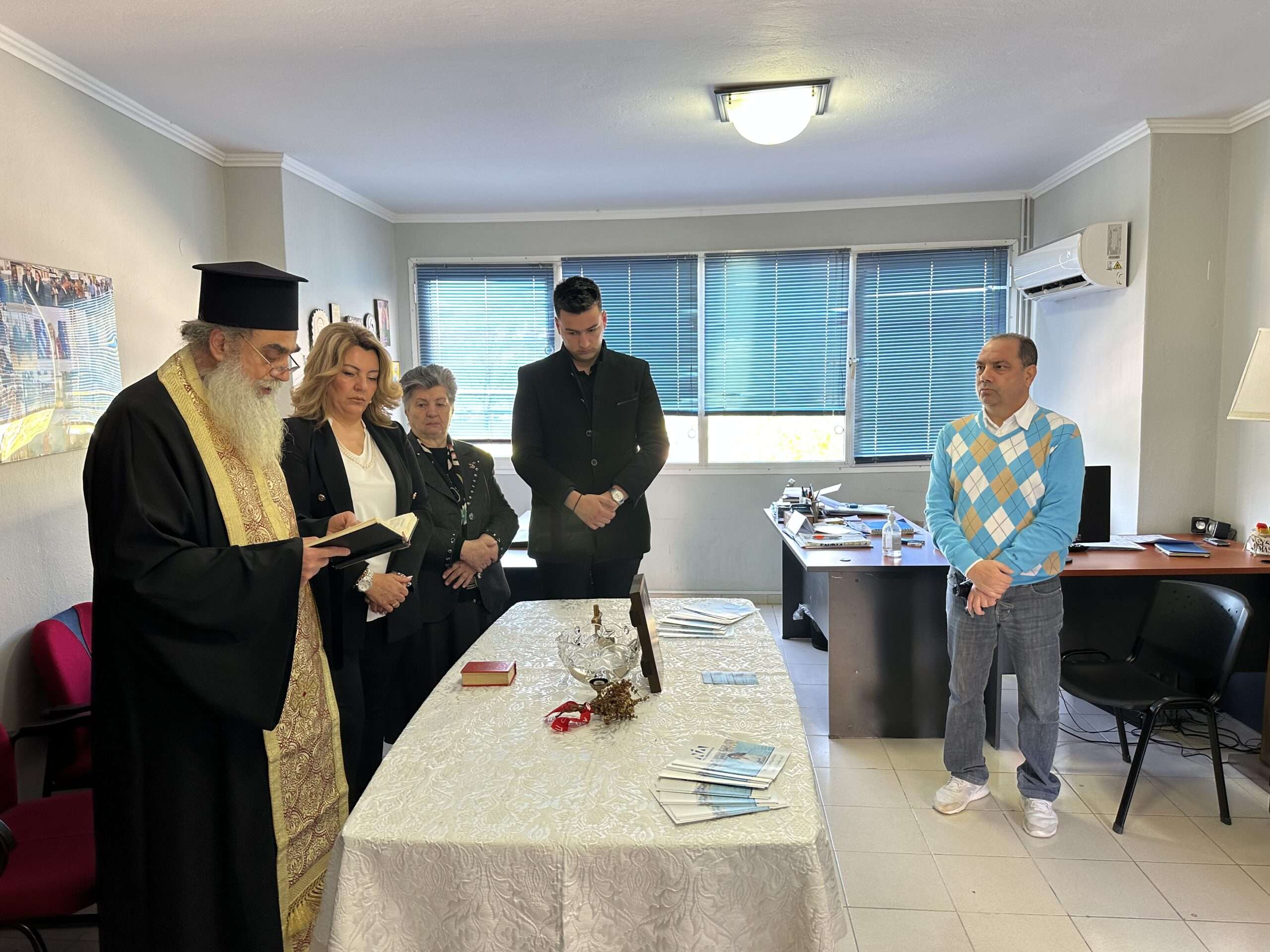 Την Παρασκευή το πρωί τελέστηκε ο αγιασμός στο πολιτικό γραφείο της Μαρίας Αντωνίου στην Καστοριά, παρουσία της οικογένειας και των συνεργατών της.