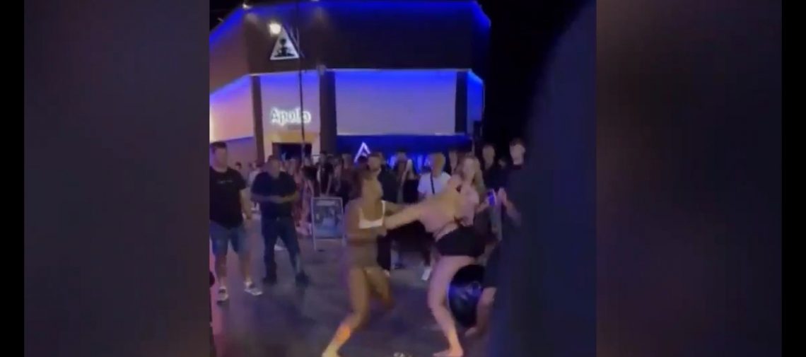 Οι δύο γυναίκες, πιθανότατα Βρετανίδες και έχοντας καταναλώσει μεγάλη ποσότητα αλκοόλ, πιάστηκαν στα μαλλί με μαλλί για τα μάτια ενός άνδρα.