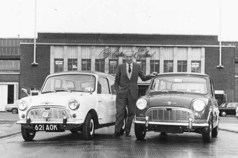 Συγκεκριμένα, όταν βρισκόταν στη British Motor Corpotation (BMC), η κρίση στο Σουέζ το 1956 προκαλεί άνοδο των τιμών του πετρελαίου και η ανάγκη για ένα μικρό και φθηνό τετραθέσιο αυτοκίνητο είναι απαραίτητη όσο ποτέ. Ετσι, τον Αύγουστο του 1959 παρουσιάζει το Morris Mini Minor ή Mini Cooper, όπως είναι γνωστό στην Ελλάδα, ένα αυτοκίνητο λιτό, χωρίς ραδιόφωνο και αξεσουάρ, καθότι o δημιουργός του πίστευε ότι αποσπούν την προσοχή του οδηγού.