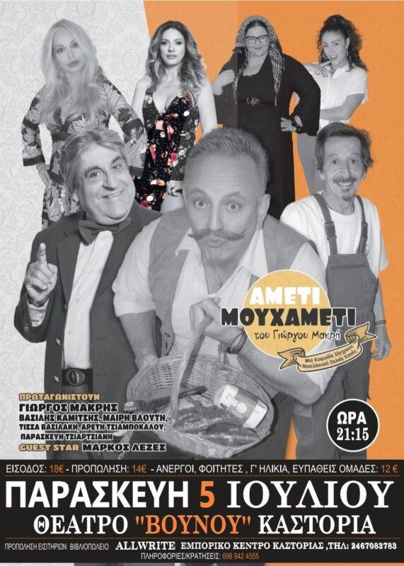 Μια θεατρική Παράσταση που βρίσκεται στο επίκεντρο όλων των θεατρικών παραστάσεων για το 2024 και η οποία ξεχωρίζει διότι είναι πρωτότυπη ,παραδοσιακή .Μια κωμωδία παλιάς κοπής αλλά τόσο επίκαιρη. Μια κωμωδία Παραδοσιακή. Μια θεατρική Παράσταση που πρέπει να απολαύσουν όλοι .