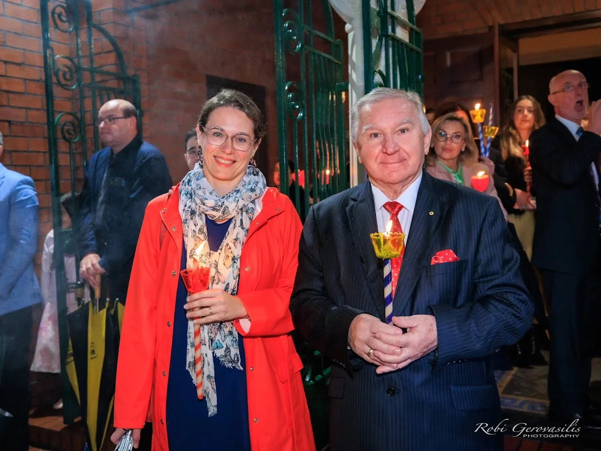 Στους πιστούς που προσήλθαν μαζικά στην τελετή της Αναστάσεως, παρά την βροχή, ο Θεοφιλέστατος κ. Ελπίδιος μετέφερε τις πασχαλινές ευχές και την ευλογία του Σεβασμιωτάτου Αρχιεπισκόπου Αυστραλίας κ.κ. Μακαρίου.