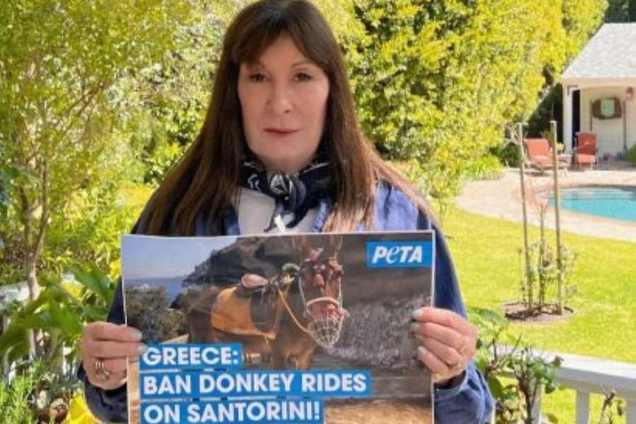 Η Αντζέλικα Χιούστον από κοινού με την PETA απευθύνουν επιστολή στον Κυριάκο Μητσοτάκη, όπου ζητούν τερματισμό των τουριστικών ιππεύσεων των γαϊδουριών στην Σαντορίνη.