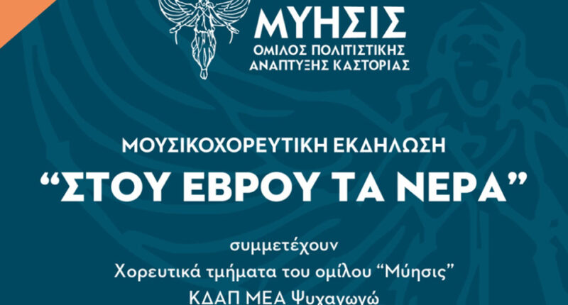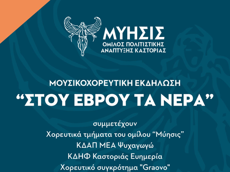 Μουσικοχορευτική εκδήλωση θα πραγματοποιηθεί από τον Όμιλο Πολιτιστικής Ανάπτυξης Καστοριάς «Μύησις» αφιερωμένη στην παράδοση της Θράκης. Εκτός από τα χορευτικά τμήματα του Ομίλου συμμετέχουν το ΚΔΑΠ ΜΕΑ «Ψυχαγωγώ», το ΚΔΗΦ «Ευημερία» και το χορευτικό συγκρότημα «Graovo» από το Πέρνικ της Βουλγαρίας.