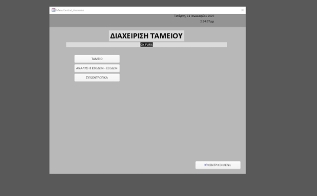 Στη διαχείριση ταμείου θα εμφανίζονται όλα τα χρηματικά διαθέσιμα και οι εκκρεμότητες του ταμείου.