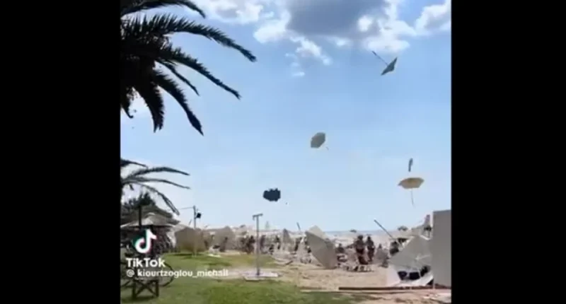 Δυνατός άνεμος σήκωσε στον αέρα ομπρέλες από παραλία της Χαλκιδικής (Βίντεο)