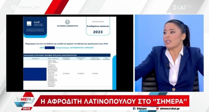 Η Αφροδίτη Λατινοπούλου δηλώνει πόθεν έσχες για το 2023 μόλις… 3.001,68 ευρώ