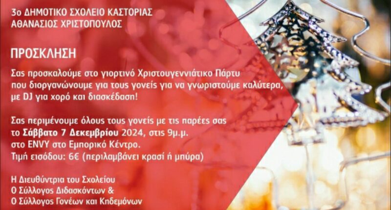Χριστουγεννιάτικο πάρτυ για τους γονείς ετοιμάζει το 3ο Δημοτικό Σχολείο Καστοριάς ,”Αθανάσιος Χριστόπουλος”