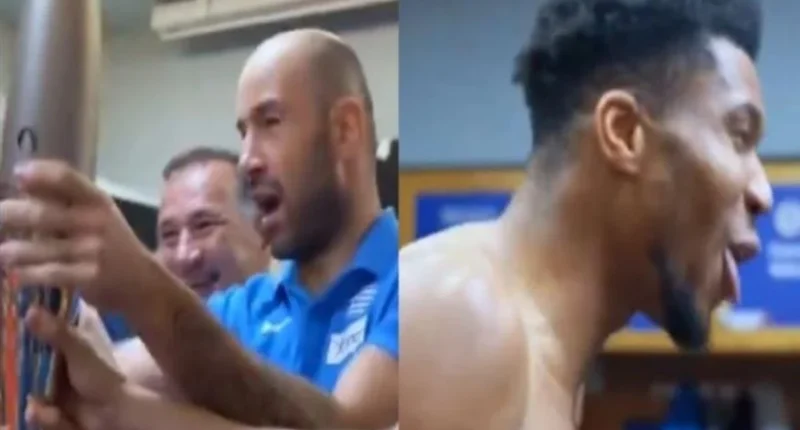 Ο Σπανούλης, η δάδα και το μπουγέλο: Ξέφρενο πάρτι στα αποδυτήρια της Εθνικής για την πρόκριση στο Παρίσι (Video)