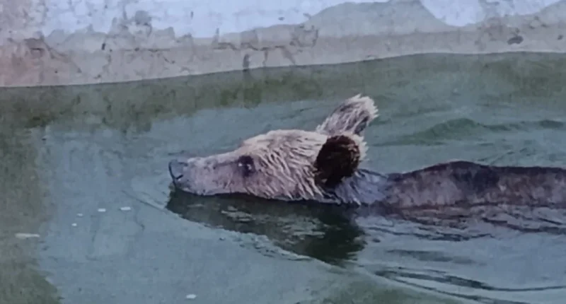 Νεαρή αρκούδα εγκλωβίστηκε σε δεξαμενή συλλογής υδάτων. Χρειάστηκε να κατασκευαστεί ράμπας για να «δραπετεύσει» από εκεί.
