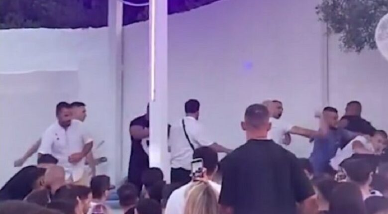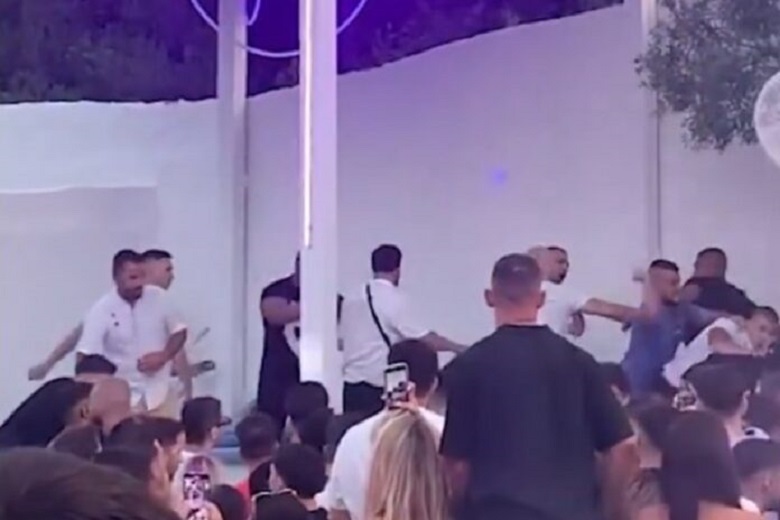 Συγκεκριμένα, όπως φαίνεται μια παρέα ανδρών πιάστηκε στα χέρια και μάλιστα «έπεσε» πολύ ξύλο υπό τους ήχους techno μουσικής.