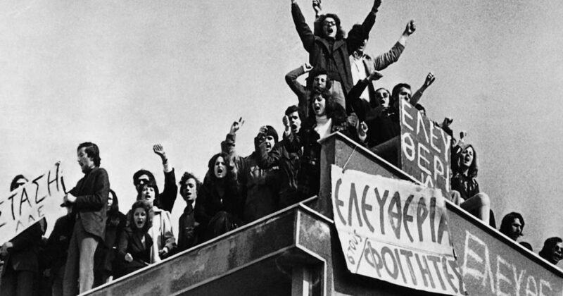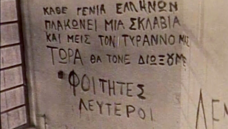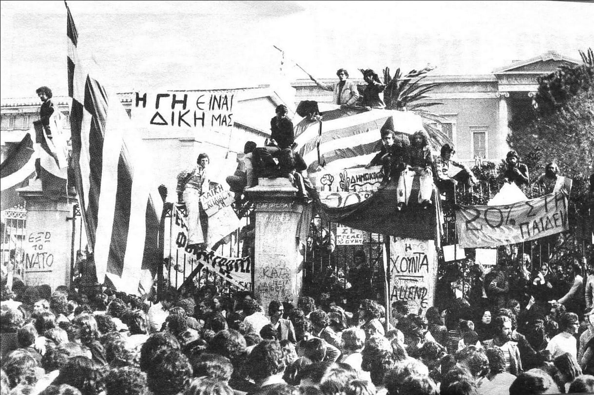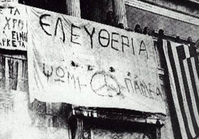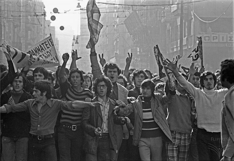 Και φτάσαμε στο Πολυτεχνείο. Ακούγαμε ότι γίνονταν κάποιες αναμπουμπούλες στην Αθήνα, κάτι φοιτητές είχαν καταλάβει σχολές κλπ., γιατί το Πολυτεχνείο δεν έγινε ξαφνικά. Είχαν γίνει και τον Φλεβάρη του ’73 κάποιες καταλήψεις σε σχολές τις οποίες τις λύσανε με επέμβαση των ανωτέρων… Πάντα εμείς εδώ τα μαθαίναμε εκ των υστέρων. Θυμάμαι την επόμενη μέρα στην τηλεόραση έδειχνε μόνο αυτά που θα προκαλούσαν στον κόσμο αγανάκτηση για τους φοιτητές, δηλαδή συνθήματα στους τοίχους, λεηλασίες, σπασμένα τζάμια, σπασμένα πανεπιστήμια, θρανία, καρέκλες κλπ., για να λέει ο κόσμος «Τι κάνουν αυτοί οι φοιτητές;» κλπ. Μετά, την επόμενη μέρα, πάλι στις ειδήσεις έλεγε τέτοια πράγματα, ότι ο στρατός μπήκε και «επέβαλε την τάξη» κλπ., καμία αναφορά για νεκρούς και τραυματίες. Μετά από δυο-τρεις μέρες ένας εγκάθετος δημοσιογράφος είχε μαζέψει σε μια βραδινή εκπομπή κάνα έξι-εφτά φοιτητές που ήτανε μέσα κι αφού τους είχανε «περιποιηθεί» αναλόγως, τους έβαλαν να λένε πράγματα που τους είχανε υποδείξει πιο πριν, ότι δήθεν αυτοί παρασύρθηκαν από το φοιτητικό κίνημα και μπήκανε μέσα για να ζητήσουν καθαρά φοιτητικά αιτήματα, όπως καλύτερες σπουδές, καλύτερα συγγράμματα, τέτοια πράγματα. Δήθεν ότι παρασύρθηκαν απ’ τους άλλους κι ήταν όλοι μετανοημένοι και ας πούμε δεν είχαν καμία σχέση με πολιτική και τέτοια πράγματα, για να δείξουν στον κόσμο ότι αυτοί που ήταν μέσα ήταν παρασυρμένοι από άλλους που ήταν εντελώς ξενοκίνητοι απ’ τα κομμουνιστικά κόμματα εννοείται. Δεν μπορούσα να φανταστώ ότι υπάρχει μόνο η αλήθεια η δικιά τους. Δηλαδή έλεγες ότι αυτά τα παιδιά που βγήκανε στους δρόμους και μπήκανε στα πανεπιστήμια και κλειστήκαν δεν μπορεί να πήγαν έτσι, γιατί ξέρεις ότι η βία φέρνει αντίδραση. Υποπτευόμασταν ότι κάτι συμβαίνει, ότι δεν είναι όπως μας τα λένε. Είχα έναν πρώτο ξάδερφο στην Αθήνα, ο οποίος δεν ήτανε μέσα στο Πολυτεχνείο, περνούσαν απ’ έξω όλες αυτές τις μέρες, βλέπανε και βλέπανε ότι ο κόσμος ανταποκρίνεται κι ότι σιγά σιγά πολιτικοποιήθηκαν εντελώς τα πράγματα. Μετά βέβαια στο Πολυτεχνείο δεν ήταν μόνο φοιτητές, μετά μπήκαν και εργάτες και αναρχικοί και χίλιοι δυο εκεί μέσα. Κι έλεγε ο ξάδερφος που ήταν στην Αθήνα ότι ακούγανε τον σταθμό των φοιτητών τον παράνομο. Τον είχε ηχογραφήσει σε κασέτα κι είχε φέρει κάνα δυο κασέτες από την Αθήνα τότε στα κρυφά και τις ακούγαμε στο σπίτι. Ακούγαμε τότε ο πατέρας μου, εγώ, ο ξάδερφος από την Αθήνα, ο αδερφός μου κι η μάνα μου και ακούγαμε –σε χαμηλή ένταση, μη μας ακούσει κανένας απ’ έξω- το γνωστό μοτίβο που έλεγαν οι φοιτητές «Εδώ Πολυτεχνείο, εδώ Πολυτεχνείο, σας μιλά ο σταθμός των ελεύθερων…». Μετά από λίγο, με αφορμή το Πολυτεχνείο έπεσε η Χούντα του Παπαδόπουλου και ανέλαβε μια άλλη πιο σκληρή Χούντα, του Ιωαννίδη. Επειδή είχε γίνει η Ελλάδα ρεζίλι παγκοσμίως, δήθεν η Χούντα ανανεώθηκε και δήθεν ήρθε άλλη Χούντα η οποία θα ήταν καλύτερη, η οποία ήταν χειρότερη.