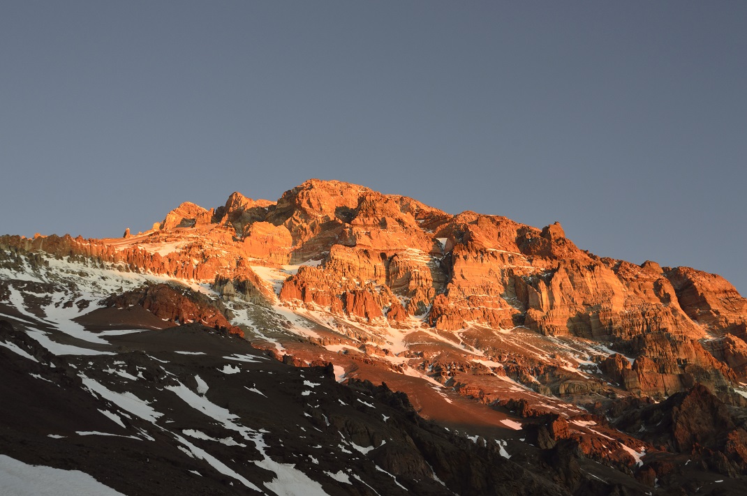 Υπήρχαν βέβαια και μέρες που ξεκινάς να σκαρφαλώνεις από το προηγούμενο βράδυ και ξέρεις ότι θα τελειώσεις την ανάβασή σου μετά από 15-18 ώρες. Το ξημέρωμα σε βρίσκει ήδη στην ανάβαση και ξέρεις ότι θα φτάσεις στη σκηνή σου λίγο πριν ξανανυχτώσει. Συνήθως αυτές είναι οι “μέρες κορυφής”, δηλαδή είναι οι μέρες που ξεκινάς από το τελευταίο camp, με προορισμό την κορυφή και γυρνάς στο camp -αυτές συνήθως είναι οι πιο μεγάλες αναβάσεις. Αυτό συμβαίνει γιατί είναι προτιμότερο να φτάσεις στην κορυφή σχετικά νωρίς, ξημέρωμα ή πρωί, ώστε να μη ρισκάρεις να βρίσκεσαι εκεί μετά το μεσημέρι, όταν πέφτει η θερμοκρασία».