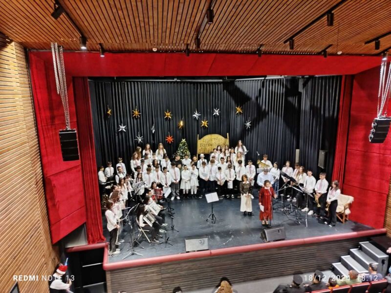 Η εκδήλωση άνοιξε με τον πιο μελωδικό τρόπο: το Μουσικό Σχολείο παρουσίασε το εξαιρετικό σύνολο Βαλκανικής Μουσικής και την παραδοσιακή χορωδία, γεμίζοντας την αίθουσα με ήχους γεμάτους παράδοση και γιορτινή διάθεση. Στο σύνολο αυτό εντάχθηκε και η χορωδία του σχολείου μας την προετοιμασία της οποίας ανέλαβε ο μουσικός κ. Μίσκας Θοδωρής που τον ευχαριστούμε για την στήριξη και αφοσίωση.