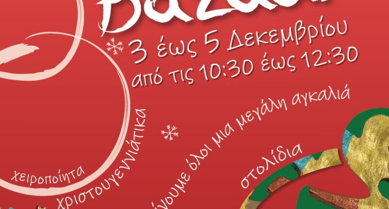Το μπαζάρ ξεκινά την Τρίτη 3 Δεκεμβρίου, μια ημερομηνία με ξεχωριστό συμβολισμό, καθώς είναι η Παγκόσμια Ημέρα Αναπηρίας, και θα διαρκέσει έως και την Πέμπτη 5 Δεκεμβρίου, από τις 10:30 έως τις 12:30.