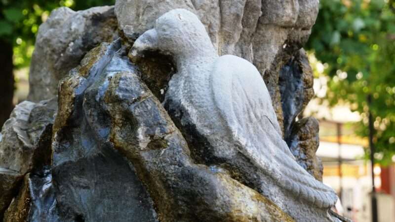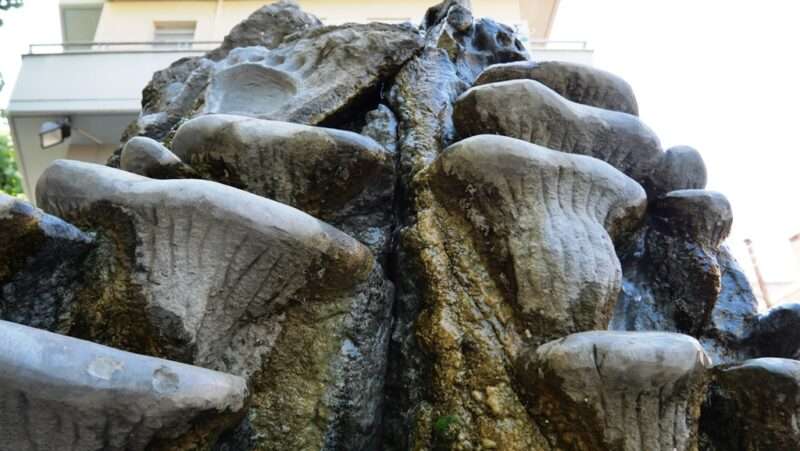 Αγέρωχα βουνά, κρυστάλλινα ποτάμια, δέντρα μεγαλόπρεπα, χιλιάδες μανιτάρια και το χαρακτηριστικό πάτημα της αρκούδας, είναι συμβολισμοί και μοτίβα που συνθέτουν αρμονικά το μοναδικό πέτρινο σιντριβάνι του Δήμου Γρεβενών, το οποίο από το 2017 κοσμεί την μικρή πλατεία, μπροστά από το Δημαρχείο.